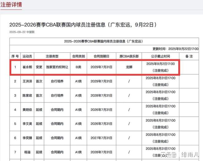 本赛季的CBA联赛还处于休赛期之中,近期关于传统劲旅广东男篮以4年B类合同签约国手锋线崔永熙的消息沸沸扬扬。据悉,CBA联赛官网已经公布了最新的注册信息,其中广东队在完成了崔