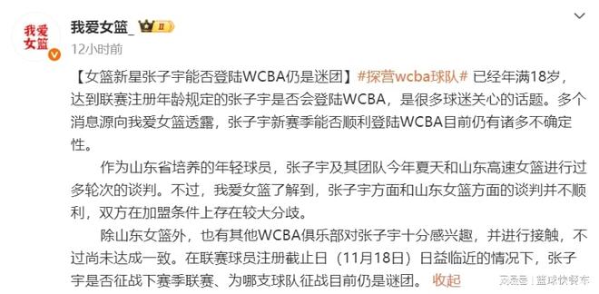 2米28的张子宇可能还打不了WCBA联赛。根据知情人士透露,作为中国女篮最具潜力的超级新人,张子宇新赛季可能还打不了WCBA联赛。过去两个赛季,外界对于张子宇征战职业联赛呼声非常高。上赛季,由于未满18岁缘故,张子宇被WCBA联赛拒绝在大门之外。新赛季,年满18岁的张子宇,能否登陆WCBA联赛,还是一个未知数。随着WCBA新赛季注册截止日期的临近,张子宇能否出战新赛季,将会是一个谜?