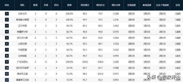 CBA最新排名:北京青岛3连胜争第1新疆山西强势反弹浙江0胜3负