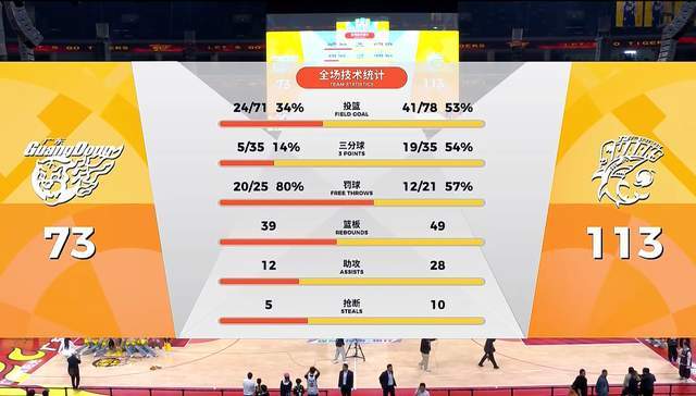 广东队3人得分上双,徐杰14投3中,三分球7投0中,拿到10分7篮板2助攻。胡明轩12投2中,三分球9投1中,拿到12分5篮板2助攻。萨姆纳16投9中,拿到23分3篮板。