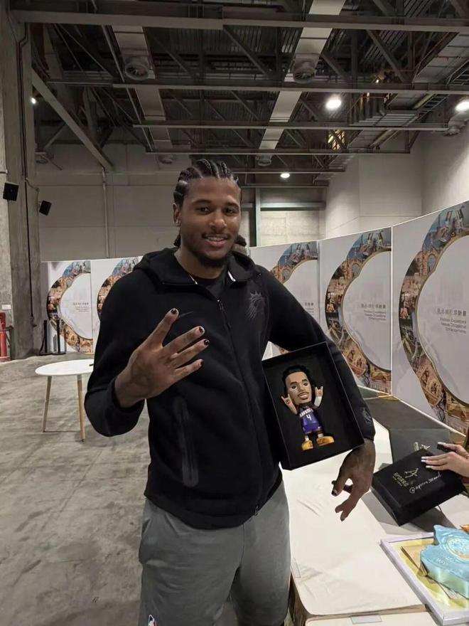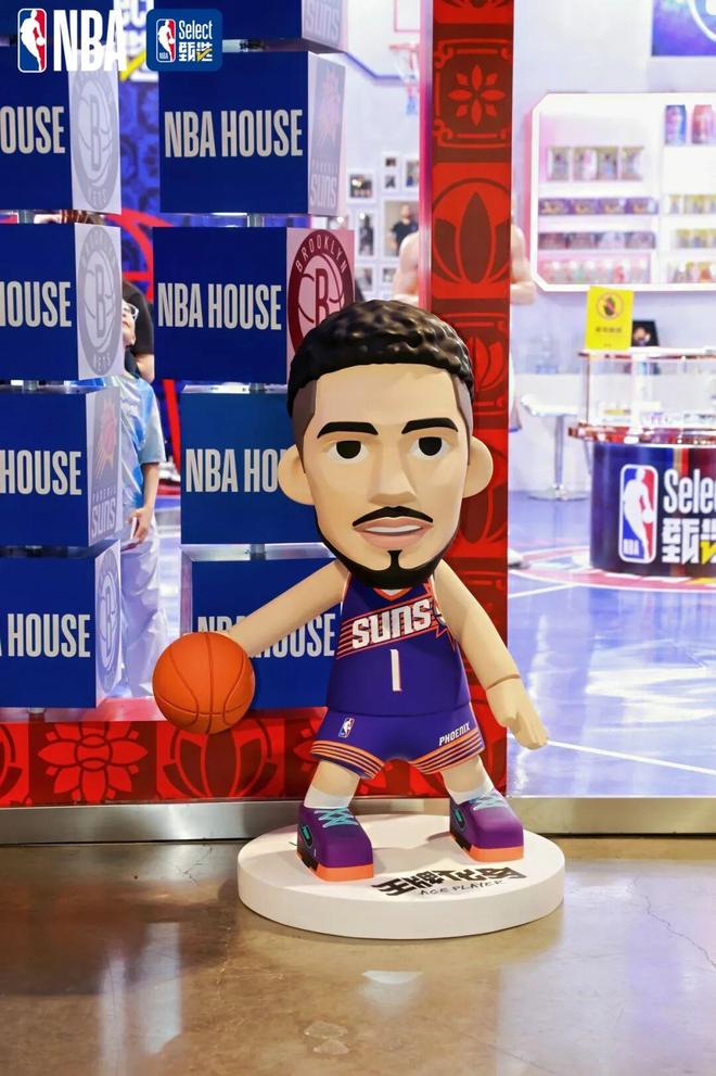 既然中国赛是太阳vs篮网,那么太阳的吉祥物来到NBA HOUSE,也就不足为奇了,手捧王牌化身布克手办,可惜捧不了KD了......