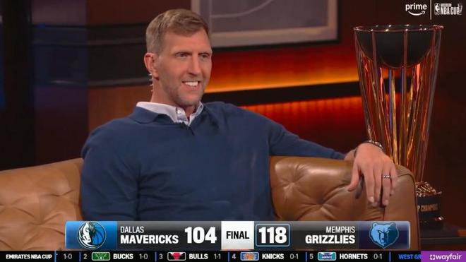 北京时间今日,在NBA杯的比赛中,独行侠队在客场以104-118不敌灰熊队,遭遇四连败的同时还以2胜7负的战绩继续排名西部垫底。担任NBA on Prime节目嘉宾的独行侠传奇球星德克-诺维