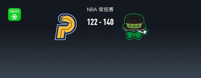 NBA战报:凯尔特人140122步行者取NBA4连胜,杰伦布朗30+3+4