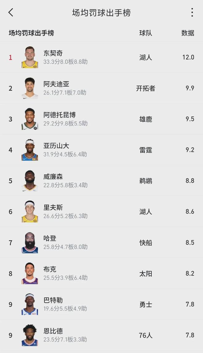 阿夫迪亚本赛季场均突破20.5次,确实是联盟第一。但他罚球也是真的多,开拓者5连胜期间,阿夫迪亚一共得到58次罚球,场均11.6次。本赛季至今,阿夫迪亚场均9.9次罚球出手,高居联盟第2,仅次于东契奇的场均12次。
