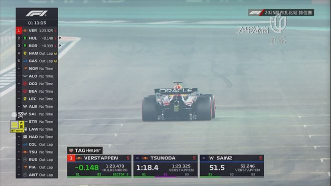Q3杆位争夺一触即发!维斯塔潘依旧第一个出场,搭载一套全新的软胎,期间碰上刚出站的角田吃了一段后者的尾流,这是一次极为精密的战术设计!最终,维斯塔潘做出1:22.295的好成绩来到第一!