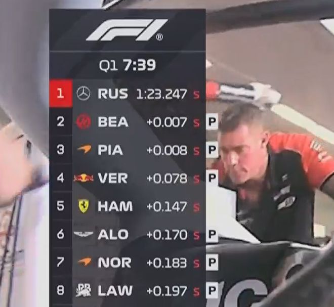 皮亚斯特里虽然在最后一段刷紫,但最后比队友慢0.029秒位列第三,在他身边的是梅奔的拉塞尔。第五至第十名分别是:勒克莱尔、阿隆索、博托莱托、奥康、哈贾尔和角田。