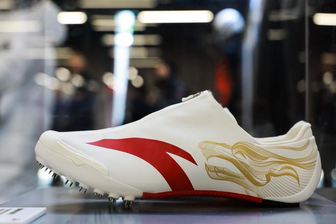 钢架雪车鞋此次也实现了进一步升级:鞋底应用轻量化特种合金锻造鞋钉,有效增强抓地力;内置碳板鞋垫,并结合中底上下层双弯折力线设计,使得助推性能实现大幅提高。