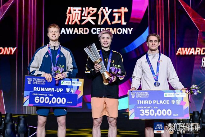 值得注意的是,本届天王杯总奖金创新高。捧起冠军奖杯的石宇奇独揽120万元奖金,分列二至四位的安东森、拉尼尔和乔纳坦分获60万元、35万元与25万元奖金。当林丹将象征荣耀的奖杯交予石宇奇时,全场灯光汇聚,定格下新生代接棒传承的高光时刻。