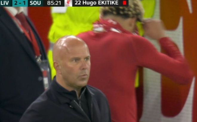 场边的利物浦主帅斯洛特无比愤怒,他瞪大了眼睛。显然,他不能接受这种情况。赛后,斯洛特直言自己无法原谅埃基蒂克:“他拿到了第二张黄牌,这真是……没有必要。也很愚蠢。是的。”