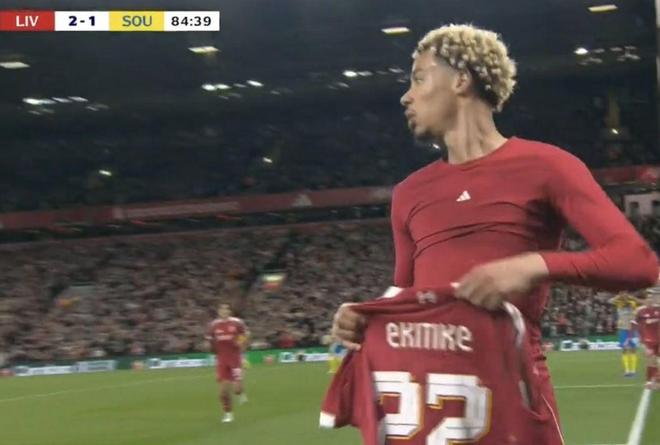 - 9月24日,英联杯,利物浦2-1绝杀南安普顿,惊险晋级。此役,埃基蒂克替补出场后绝杀建功。不过,他在进球后脱衣庆祝,拿...发表于: 09-24 11:38