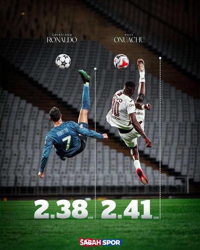 在土超第7轮比赛特拉布宗体育客场对阵卡拉居姆吕克的比赛中,特拉布宗体育2米01的大中锋奥努阿楚上演精彩倒钩破门。据海外媒体统计,奥努阿楚的抬脚高度为2.41米,打破了此前C罗2