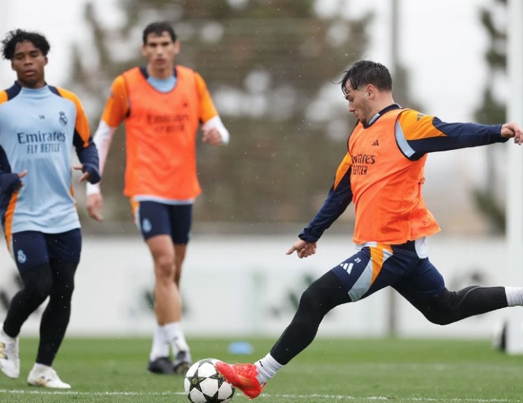 最后,队员们在小场地进行了多场对抗赛,并进行了射门训练。罗德里戈和琼阿梅尼在球场上单独训练,而阿拉巴则继续进行康复训练。