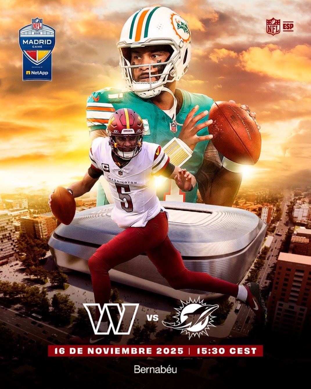 5月14日报道 据《马卡报》报道,美国最受关注且收入最高的体育赛事NFL即将在皇马的新伯纳乌球场举行,几周前在美国已有消息透露,迈阿密海豚和华盛顿指挥官将在这座球场进行一场高水平对决。