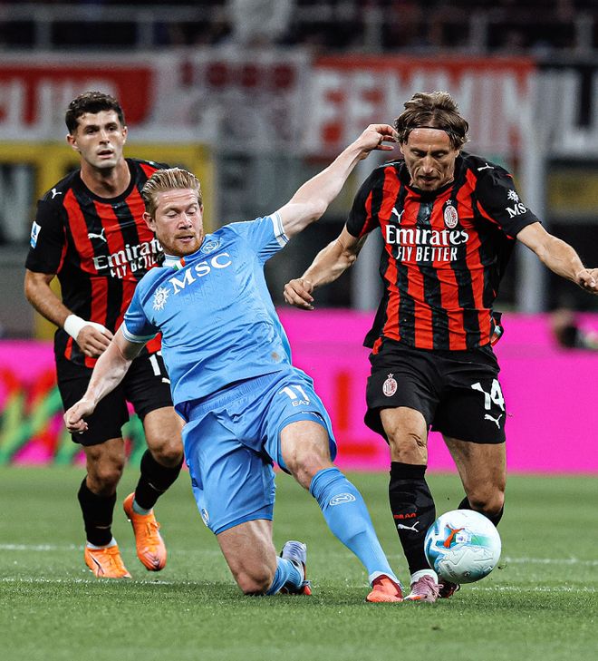 上赛季主客场被那不勒斯双杀的AC米兰,此役为了能够报仇雪恨,在圣西罗也是毫无保留,迈尼昂镇守龙门,身前是帕夫洛维奇、加比亚和托莫里组成的三后卫防守体系,埃斯图皮尼安、拉比奥特、莫德里奇、福法纳和萨勒马科尔斯在中场一字排开,普利西奇和S希门尼斯搭档双前锋。