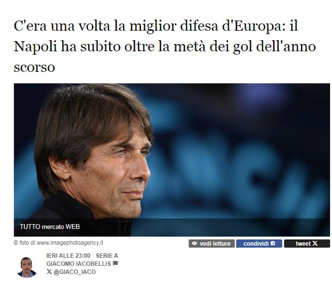 雷速体育10月22日宣 在欧冠客场2-6不敌埃因霍温之后,那不勒斯本赛季的丢球数已经达到了16个,而上赛季,那不勒斯在意甲和意大利杯的总失球数才27个,曾经的那条欧洲最稳固的防线,