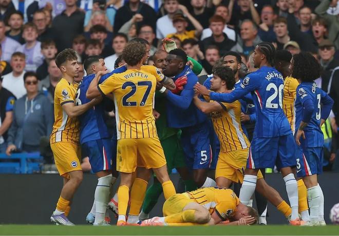 雷速体育9月28日宣 切尔西1比3不敌布莱顿的比赛末段,场上火药味骤然升级。凯塞多在与布莱顿前锋明特发生口角后被队友桑切斯拉开,但他随即将怒火转向后卫范赫克,并疑似在混乱