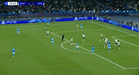 就此德布劳内在过掉两人之后,霍伊伦德跑出了非常好的交叉位置,在与对方中后卫的对抗后,他充分发挥出了自己灵活和速度快的优势,摆脱之后一脚低射打了对方门将一个小门儿成功的破网,就此那不勒斯1:0领先。