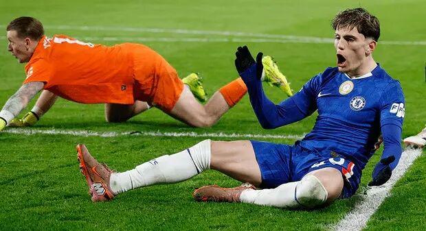 自11月下旬3-0击败巴萨以来,切尔西已经连续4场比赛无法赢球。第21分钟,帕尔默凭借个人能力打破僵局,左脚低射穿过皮克福德,随后摆出标志性庆祝动作,令主场球迷沸腾。