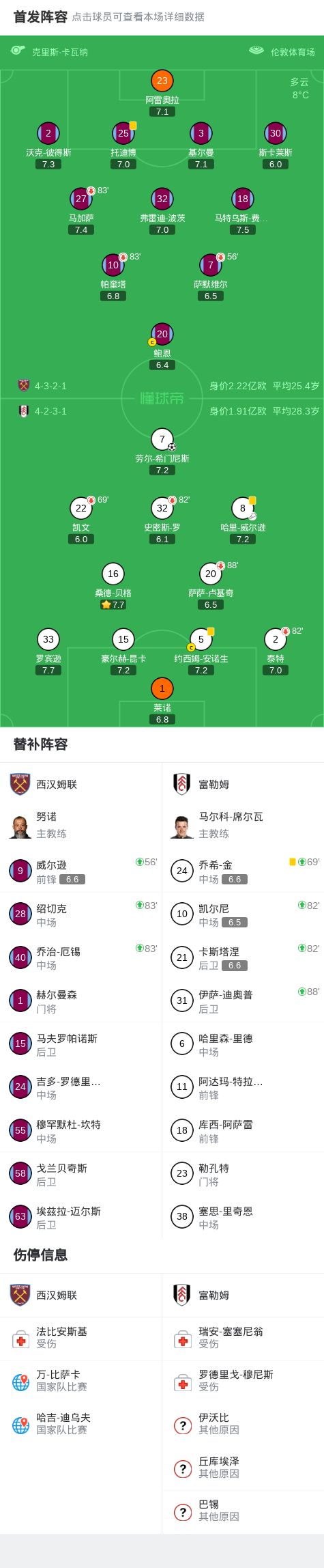 西汉姆联01富勒姆,劳尔希门尼斯绝杀,斯卡莱斯解围失误送礼
