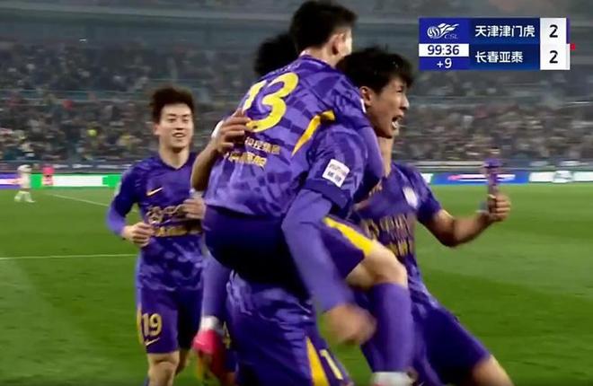 补时第90+1分钟,贺一然自摆乌龙,亚泰球迷就把心担到了嗓子眼儿。补时第90+10分钟,门前乱战,梅州籍球谢维军打进绝平进球,亚泰煮熟的鸭子又飞走了!此时,恐怕没有球迷再对“卧龙凤雏”给予宽容了。王禹踹哈达斯脚踝那下,太狠了!津门虎也是被激怒了。多打一人发起猛攻。